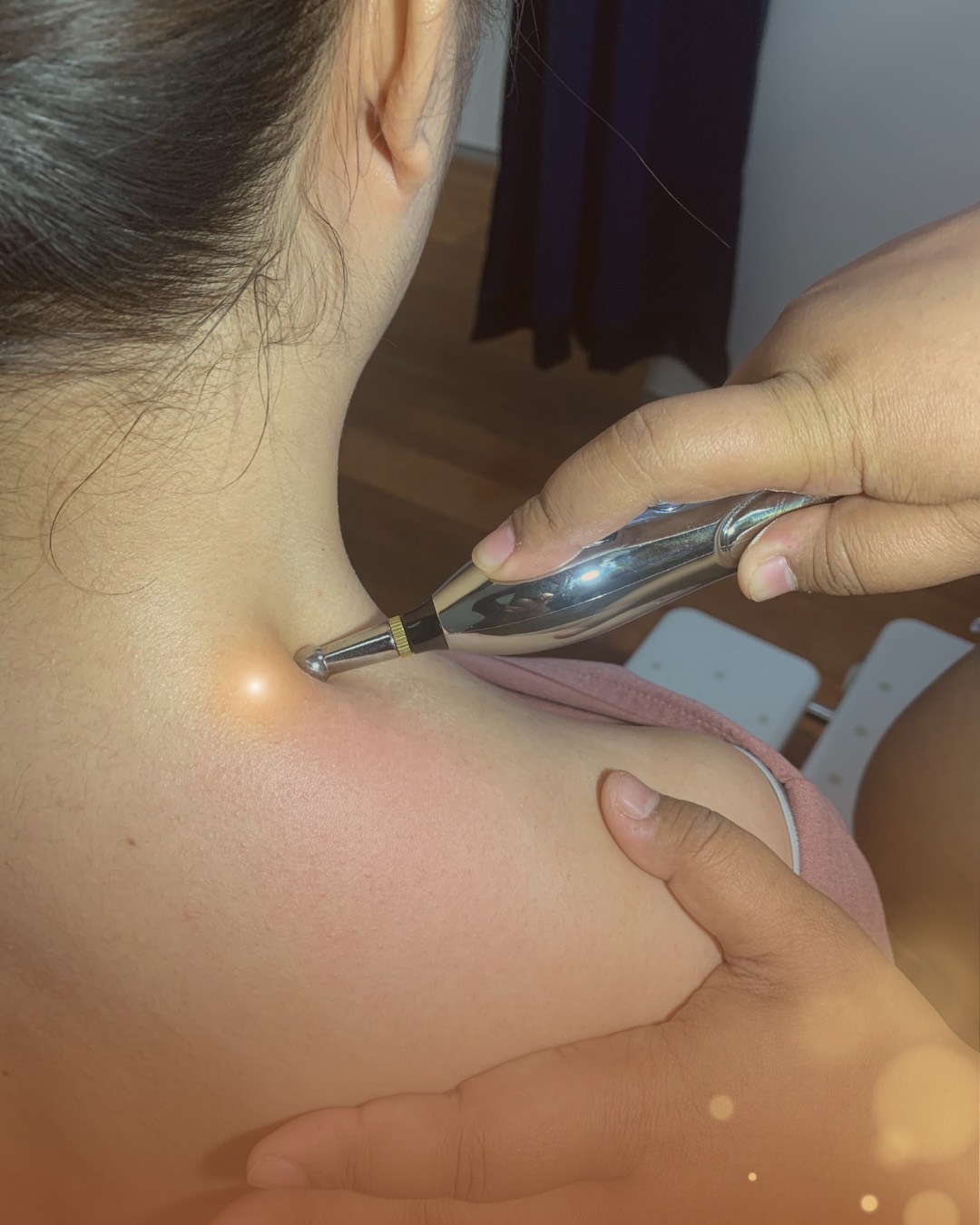 It’s a therapeutic technique using an acupressure pen. It works based on traditional acupressure principles, but the tool allows for more precise, deeper, and more accurate pressure. The pen also generates gentle pulses to stimulate the points more effectively.
