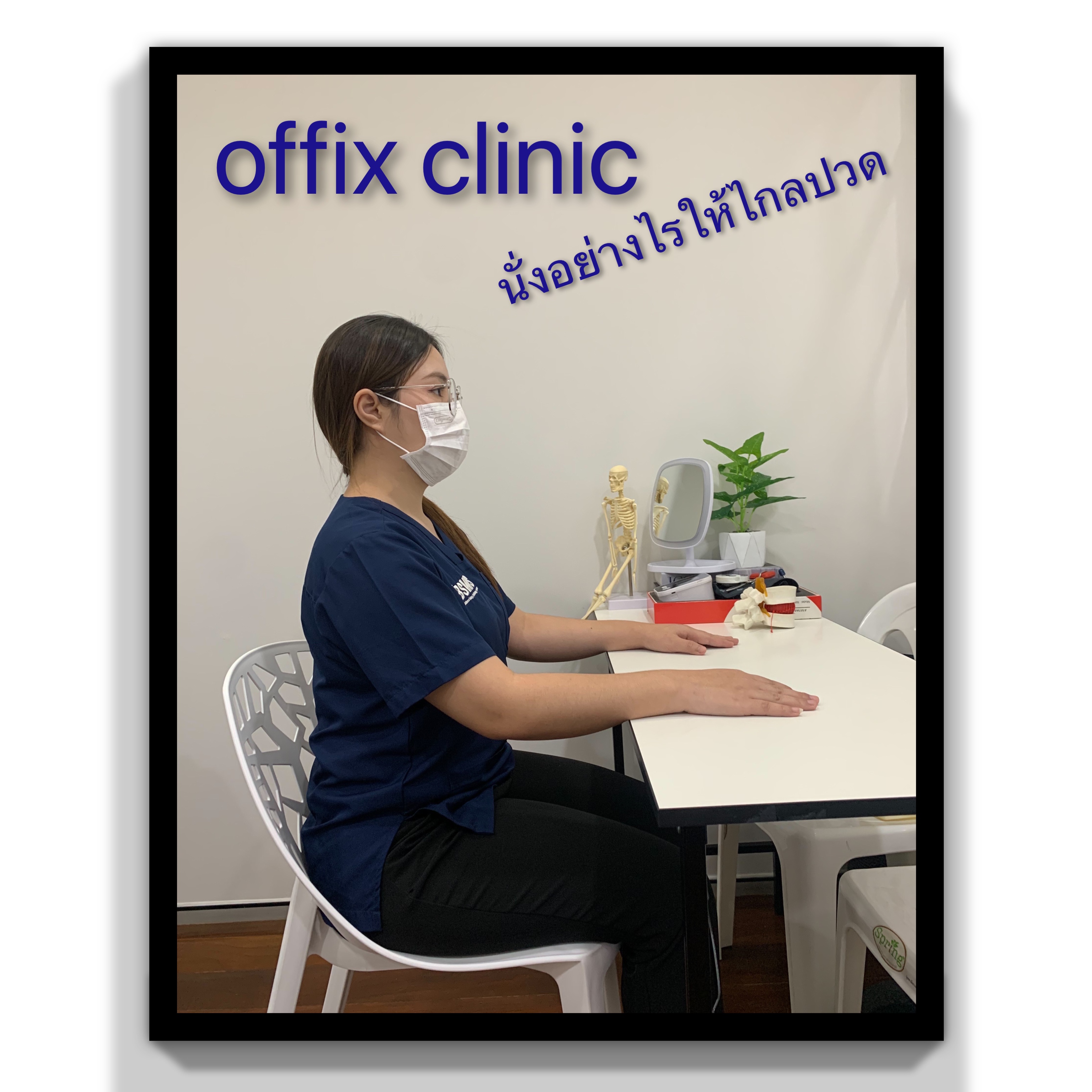 1.ปรับท่านั่งให้ถูกต้อง นั่งตัวตรง ไม่งอหลัง ปรับเก้าอี้ให้อยู่ในระดับที่เหมาะสม