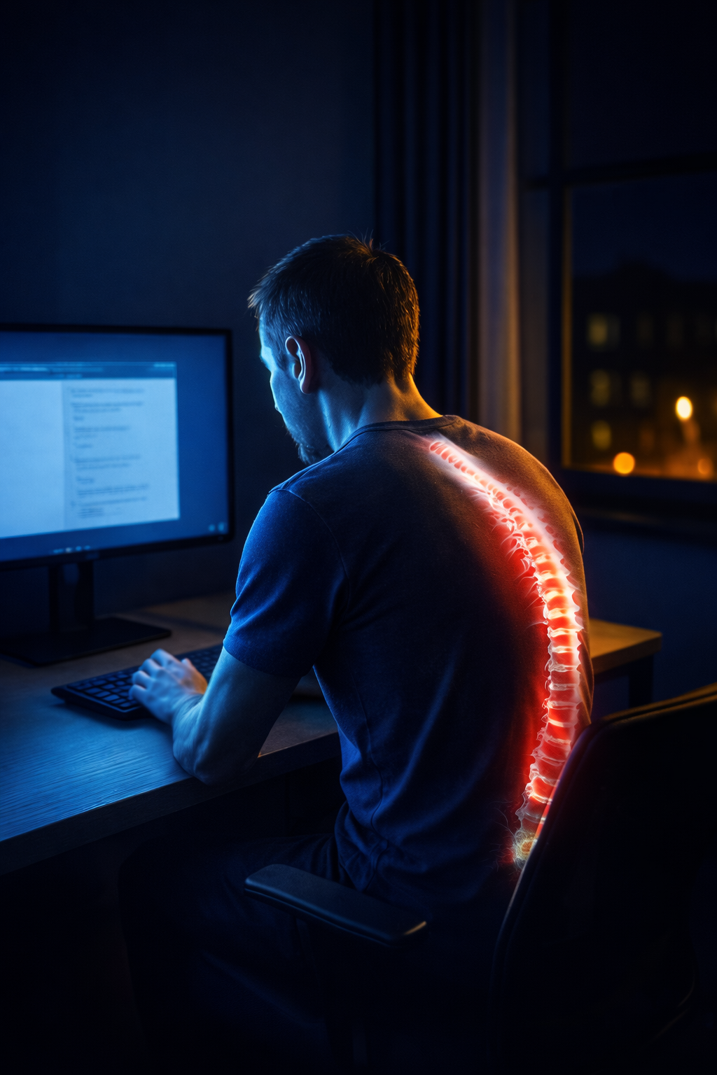 ⚠️ Slouching posture, rounded shoulders, or a hunched back while sitting